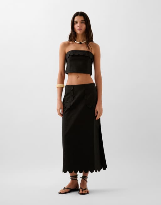 Scalpers – Schlichter Midirock aus Leinen in Schwarz