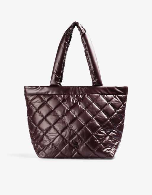 Scalpers – Scnyquilted – Gesteppte Shopper-Tasche in Metallic-Burgunderrot
