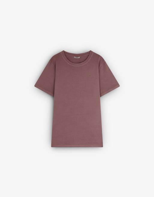 Scalpers – T-Shirt in Burgunderrot mit farblich abgestimmter Totenkopf-Stickerei