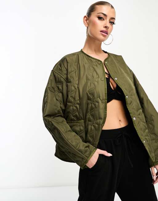 Scalpers – Wendbare Steppjacke in Khaki mit Leopardenmuster