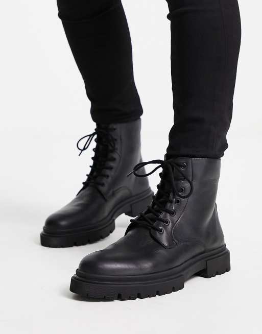 Schuh – Dane – Schnürstiefel aus schwarzem Leder mit dicker Sohle