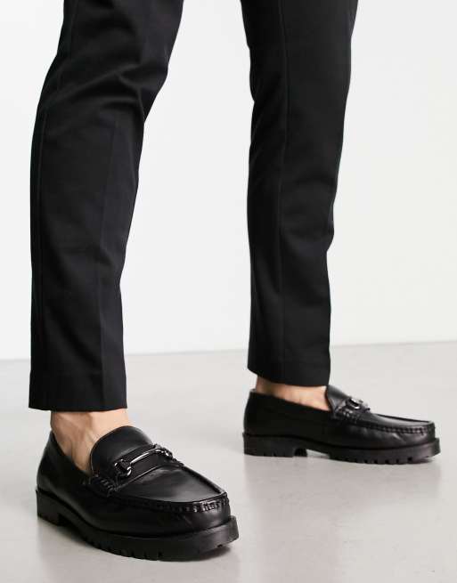 schuh – Ralph – Klobige Loafer aus schwarzem Leder mit Trense