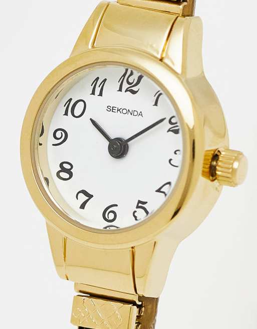 Sekonda – Damenuhr in Gold mit elastischem Armband und weißem Zifferblatt