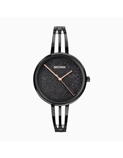 Sekonda – Stardust – Damenuhr mit schwarzem Zifferblatt mit 36 mm Durchmesser und legiertem Armband mit halbem Armreif-Design