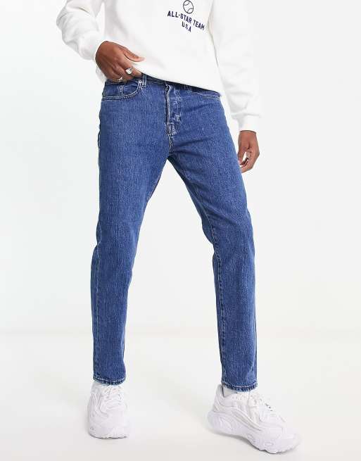 Selected Homme – Schmal geschnittene Jeans in mittelblauer Waschung