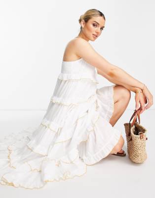 Selected Femme – Langes, gestuftes Sommerkleid aus Baumwolle in Weiß - WHITE