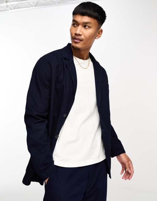 Selected Homme –Anzugjacke in dunklem Indigoblau aus gewaschener Baumwolle