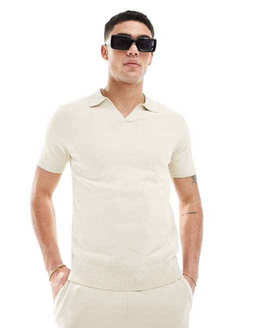 Selected Homme – Gestricktes Polohemd in Beige mit Reverskragen, Kombiteil