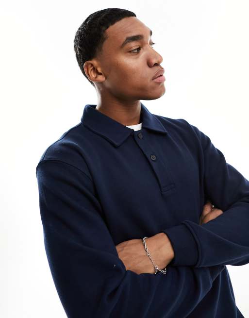 Selected Homme – Langärmliges Polohemd au Sweatshirtstoff in Marineblau