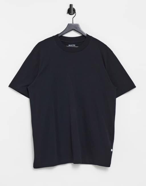 Selected Homme – Lässiges T-Shirt aus schwerer Baumwolle in Schwarz - BLACK