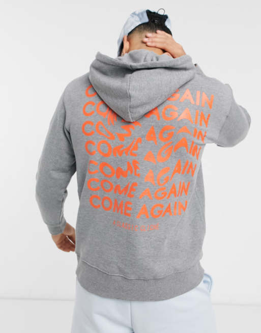 Selected Homme – Locker geschnittener Baumwoll-Kapuzenpullover in Grau mit „Come Again”-Rückenprint