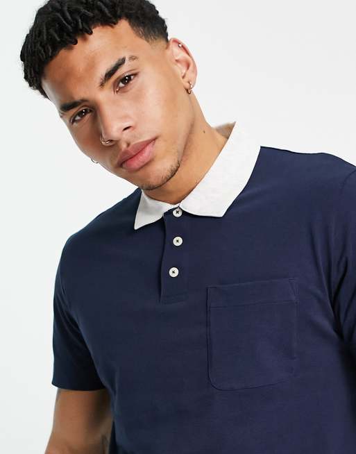 Selected Homme – Polo-T-Shirt aus Jersey mit Kontrastkragen in Marineblau