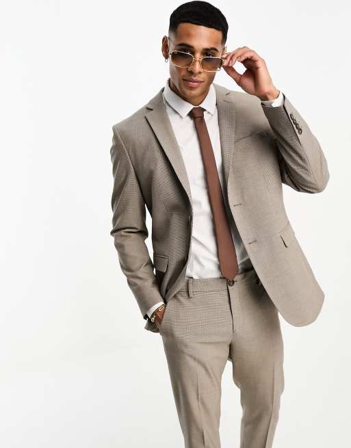 Selected Homme – Schmale Anzugjacke in Braun mit Hahnentrittmuster