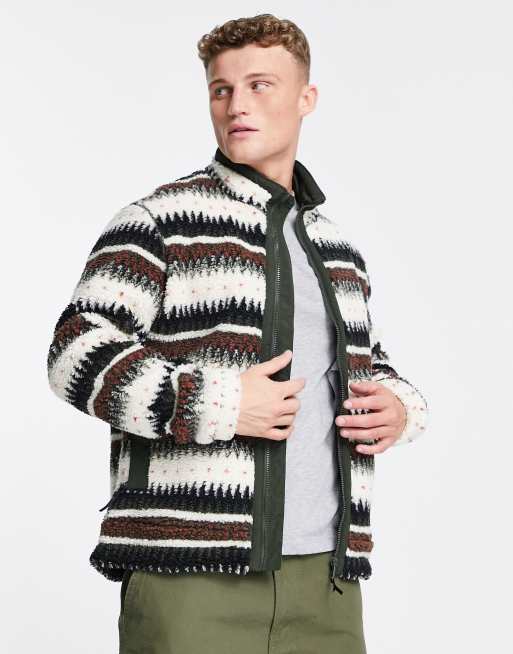 Selected Homme – Schwere Fleecejacke mit mehrfarbigem Muster