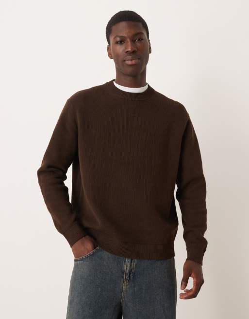 Selected – Kastiger Strickpullover aus 100% Baumwolle in Braun