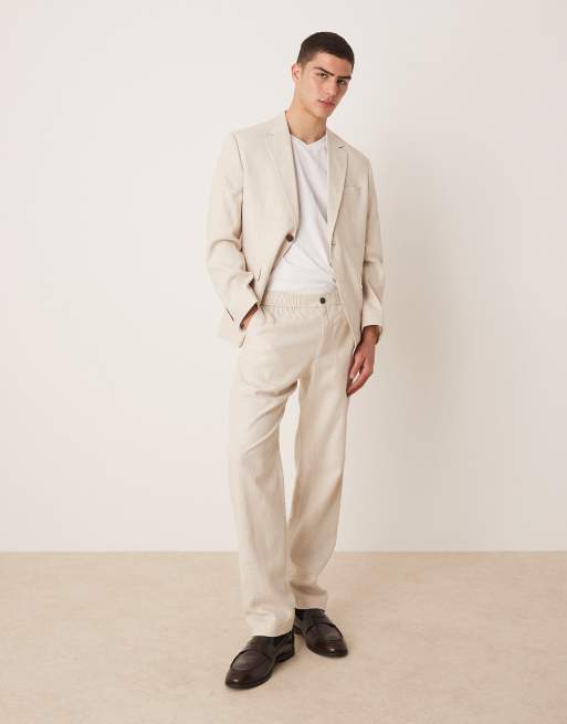 Selected – Malik – Regulär geschnittene Hose aus Leinenmix in Creme