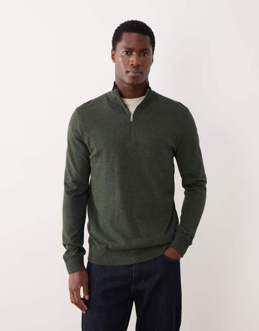 Selected – Pullover mit kurzem Reißverschluss in Dunkelgrün