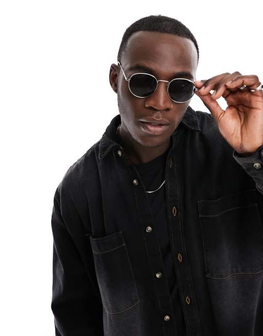 Selected – Runde Sonnenbrille in Silber mit schwarzen Gläsern