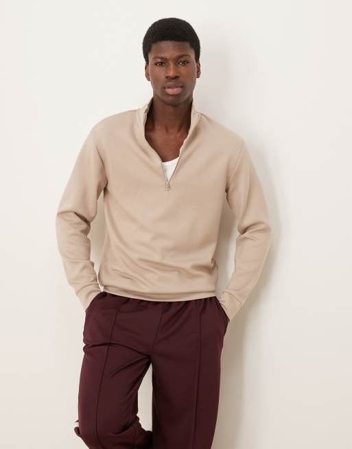Selected – Sweatshirt in Cremeweiß mit kurzem Reißverschluss