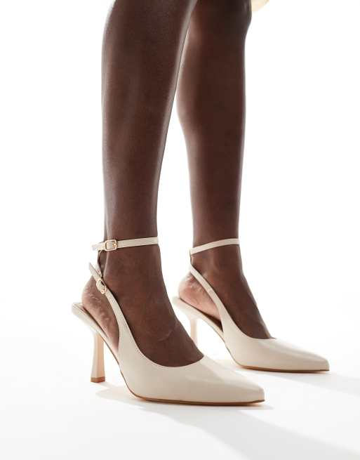 SEQWL Wide Fit – Salado – Slingback-Schuhe in Stein mit Pfennigabsatz
