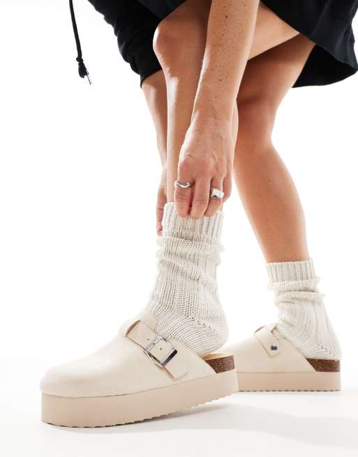 SEQWL – Clogs in Steinbeige mit flacher Plateausohle