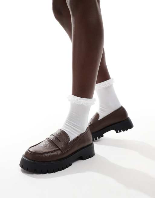 SEQWL – Penny-Loafer in Used-Braun mit dicker Sohle