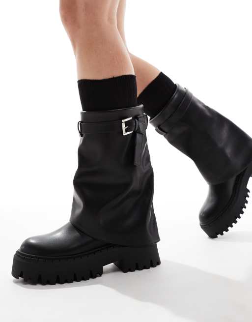 SEQWL – Stiefel in Schwarz mit dicker Sohle und umgeschlagenem Schaft
