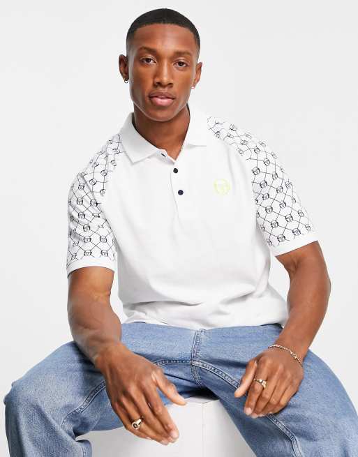 Sergio Tacchini – Polohemd in Weiß mit Ärmeln mit Monogrammaufdruck
