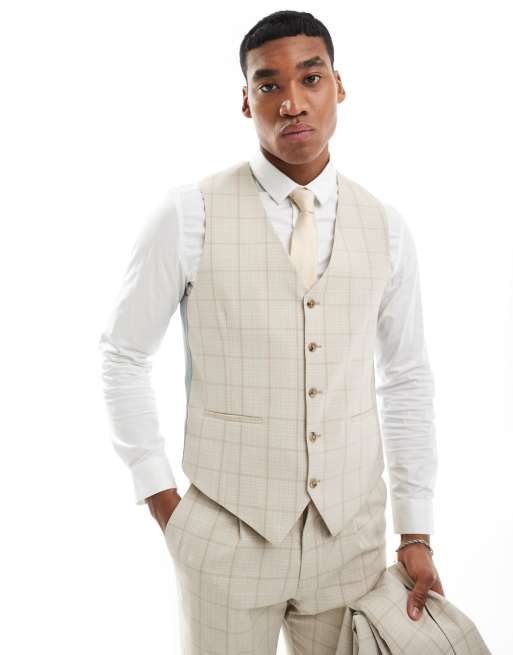 Shelby & Sons – Wainwright – Schmale Anzugweste in Steinbeige mit großkariertem Muster