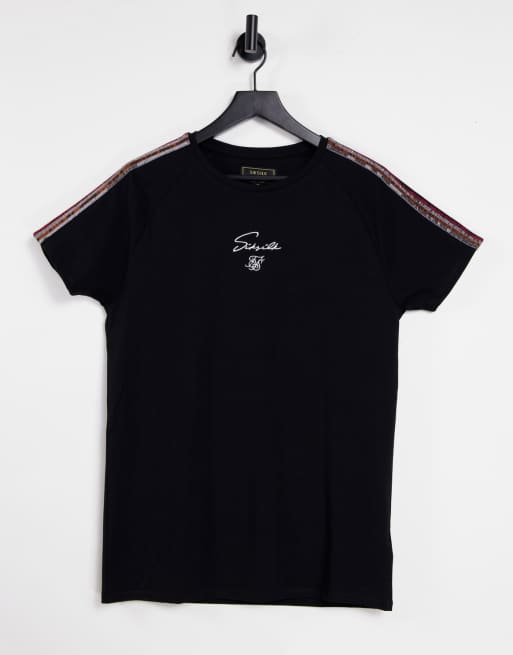 Siksilk – T-Shirt mit Raglanärmeln in Schwarz