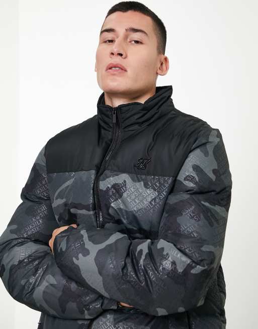 SikSilk – Wattierte Jacke mit Military-Muster und Print