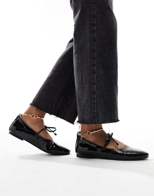 Simmi London – Abbie – Ballerinas in Schwarz mit Schleifendetail, Raffung und abnehmbarem Fußkettchen