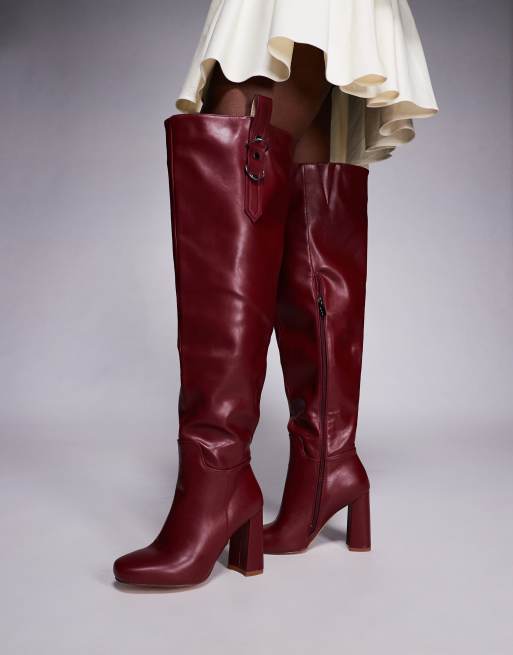Simmi London – Harrieta – Overknee-Stiefel in Burgunderrot mit Absatz