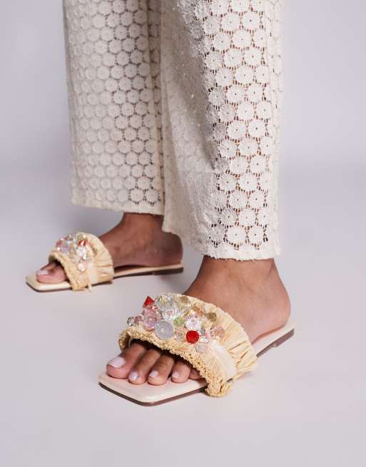 Simmi London – Lamar – Flache Sandalen in Beige mit verziertem Riemen