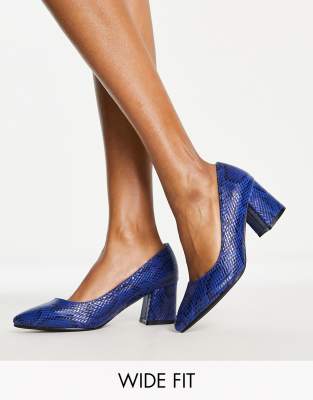 Simply Be Extra Wide Fit – Elodie – Absatzschuhe in Blau mit Schlangenmuster