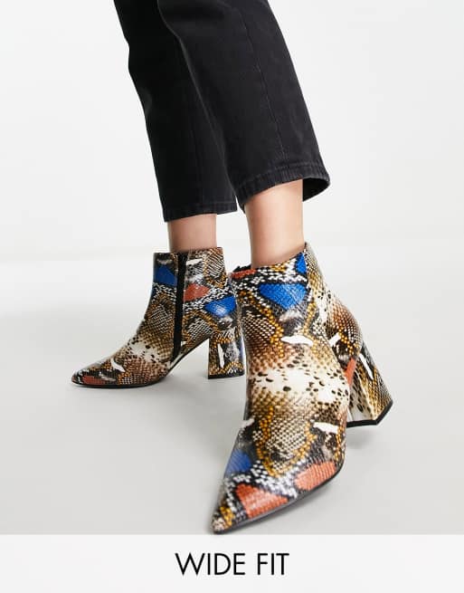 Simply Be Wide Fit – Shauna – Hohe Ankle-Boots mit Schlangenmuster