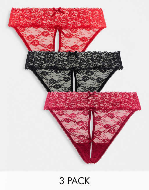 Simply Be – 3er-Pack Tangas mit Zierausschnitten im Schrittbereich