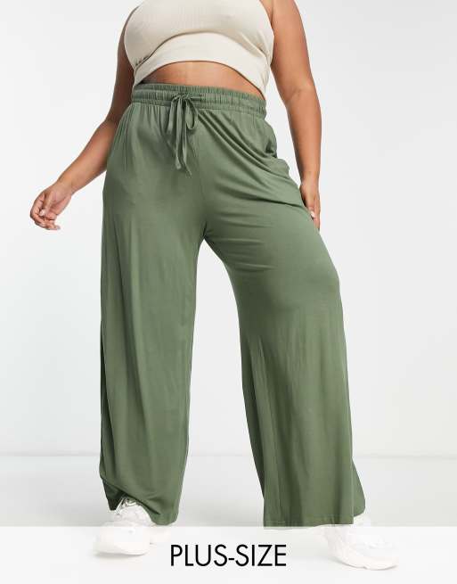 Simply Be – Hose mit weitem Bein aus Jersey in Khaki