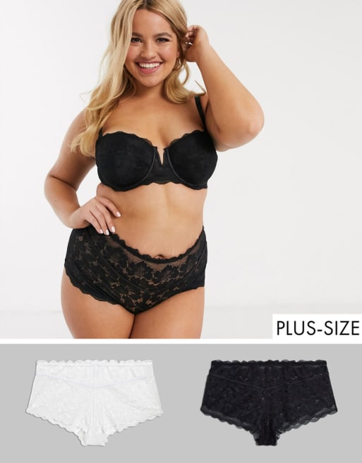 Simply Be – Katie – Spitzen-Lingerie-Set in Schwarz und Weiß, 2er-Pack