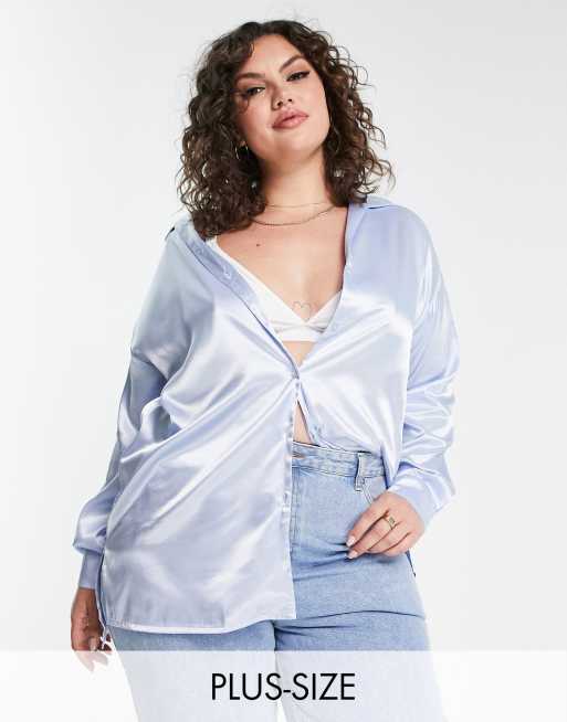 Simply Be – Satin-Hemd in Hellblau