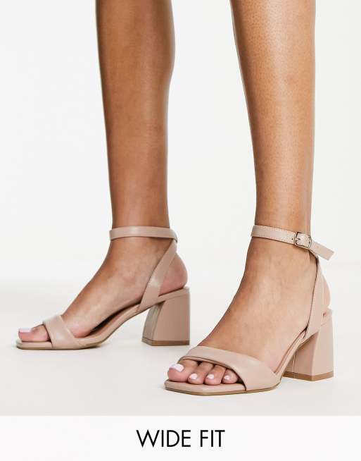 Simply Be Wide Fit – Sandalen in Stone mit Blockabsatz