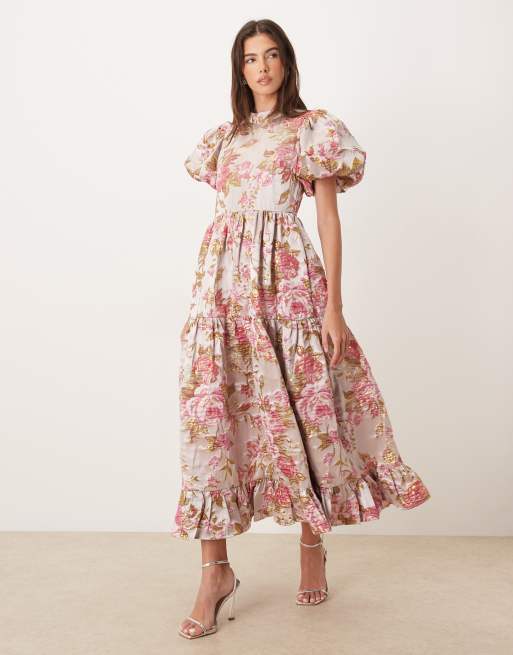 Dream Sister Jane – Almost Bloom – Kleid aus Jacquard in Rosa mit Blumenmuster und passendem Scrunchie-Haargummi