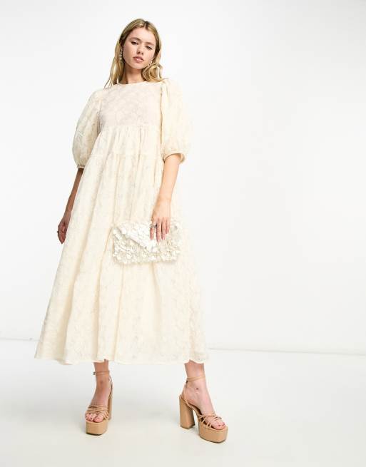 Dream Sister Jane – Wadenlanges Kleid aus floraler Spitze in Elfenbeinweiß