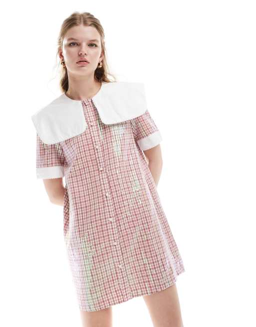 Sister Jane – Minikleid in Rosa mit Oversize-Kragen und Paillettenverzierung