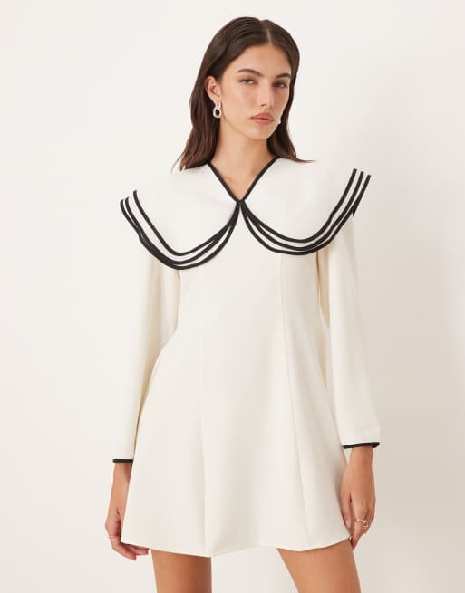 Sister Jane – Minikleid in Weiß mit mehrreihigem, übergroßem Kragen und Kontraststreifen