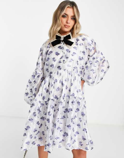 Sister Jane – Oversize-Hängerkleid aus Jacquard-Stoff mit blauem Blumenmuster