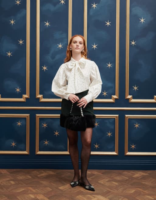 Sister Jane – Verzierte Samt-Tasche in Schwarz