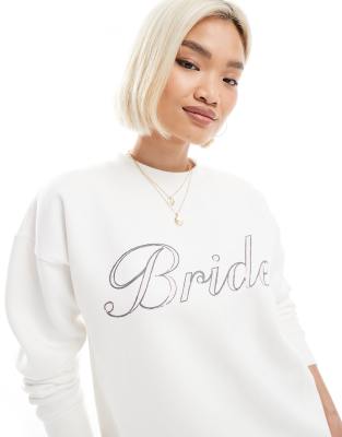 Six Stories – Bride – Sweatshirt in Elfenbeinweiß mit „Bride“-Schriftzug, Kombiteil