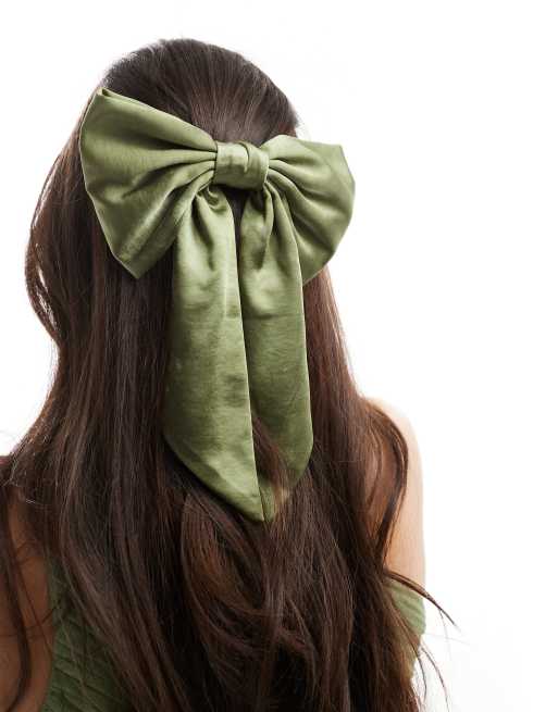 Six Stories – Bridesmaid – Brautjungfern-Haarklammer aus Satin in Moosgrün im Schleifendesign