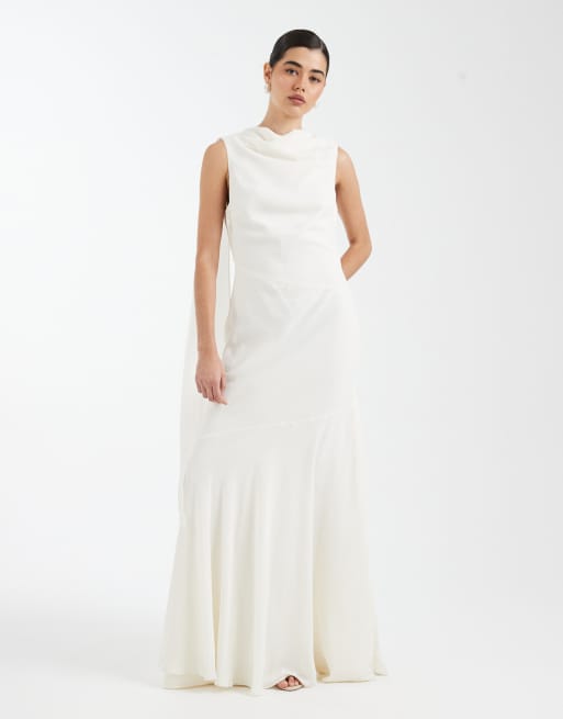 Six Stories – Bridesmaid – Crepe-Maxikleid in Elfenbeinweiß mit hohem Wasserfallausschnitt